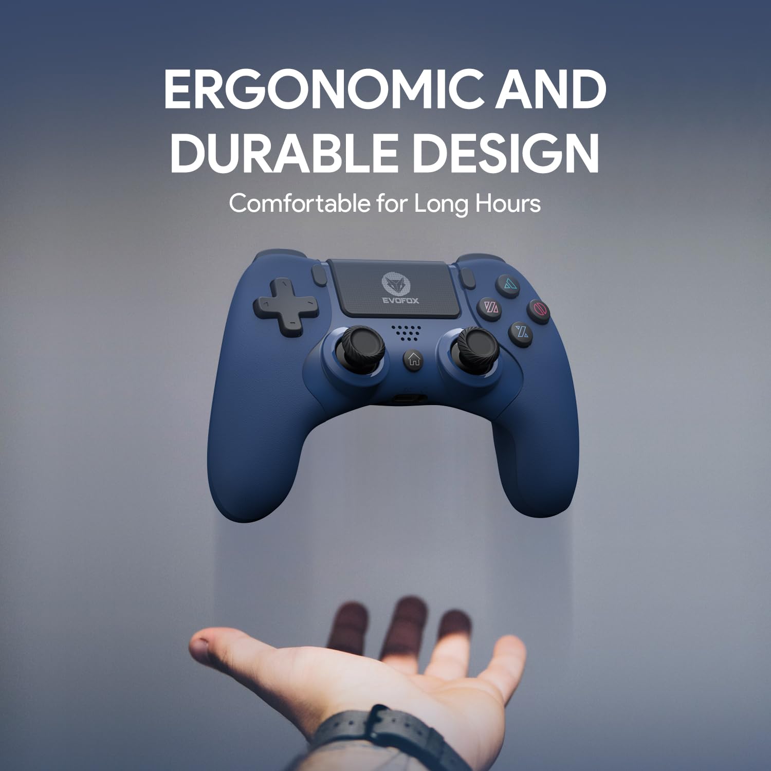 OPEN BOX EvoFox Elite Play ps4 controller dualshock 4, iPad & iPhones | Bluetooth 5 | Dual Vibration | 6 Axis Gyro Sensor | 10 Hours of Game Play | Touch Panel | Built in Speaker | 3.5 mm Headset Port (Blue)