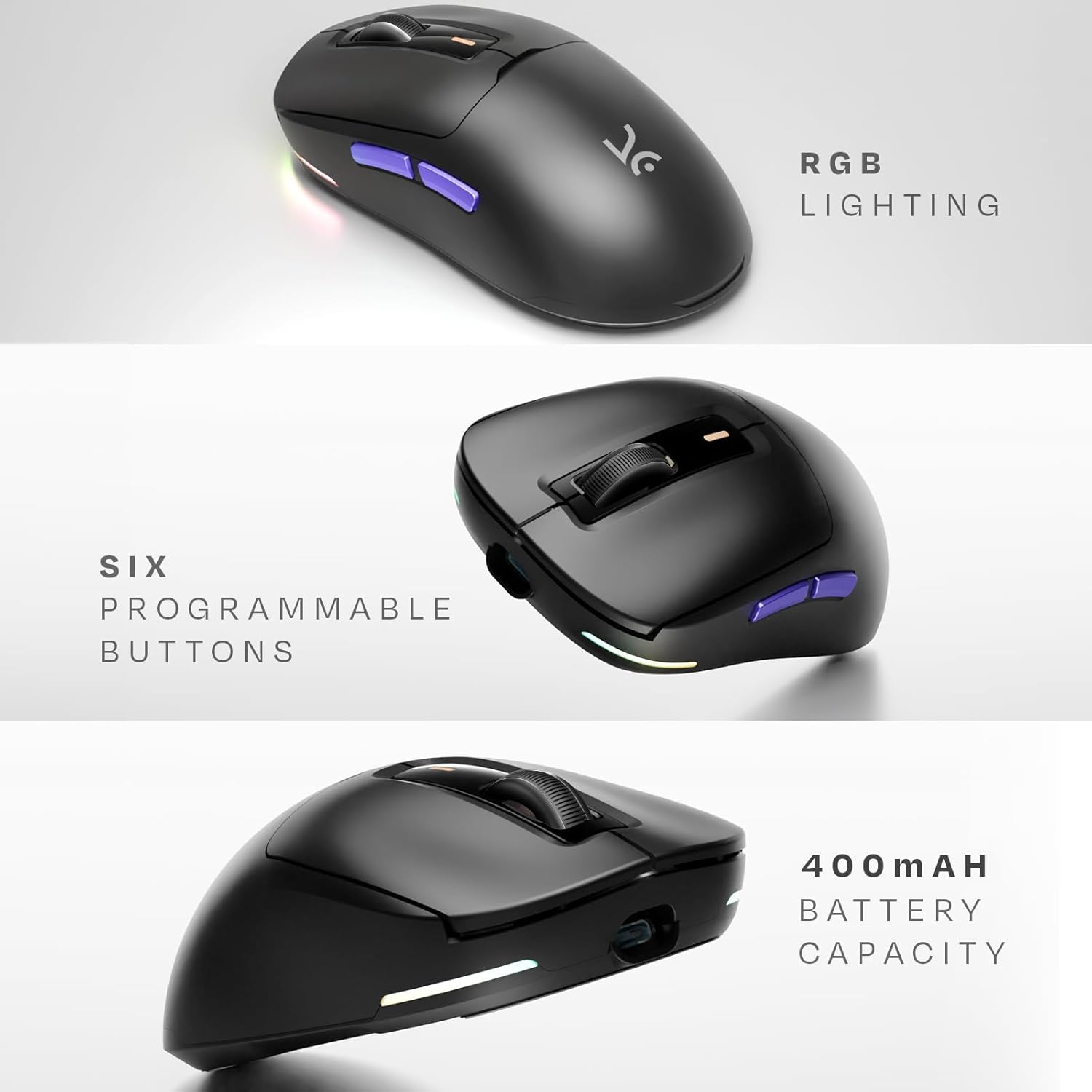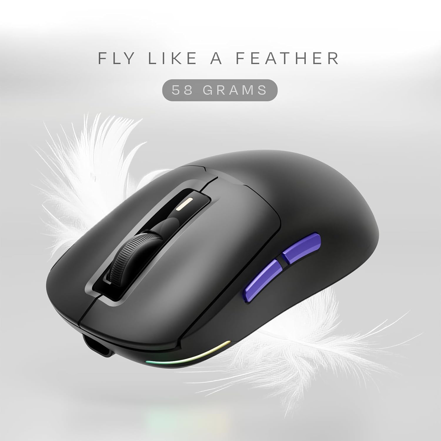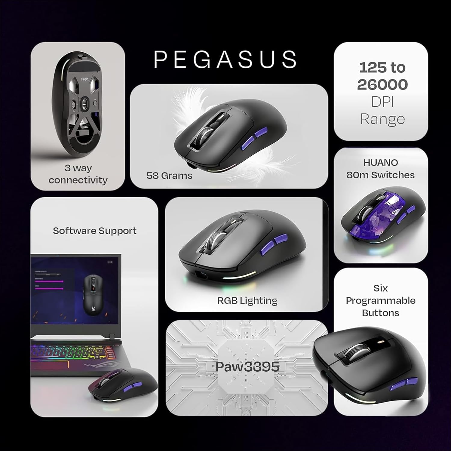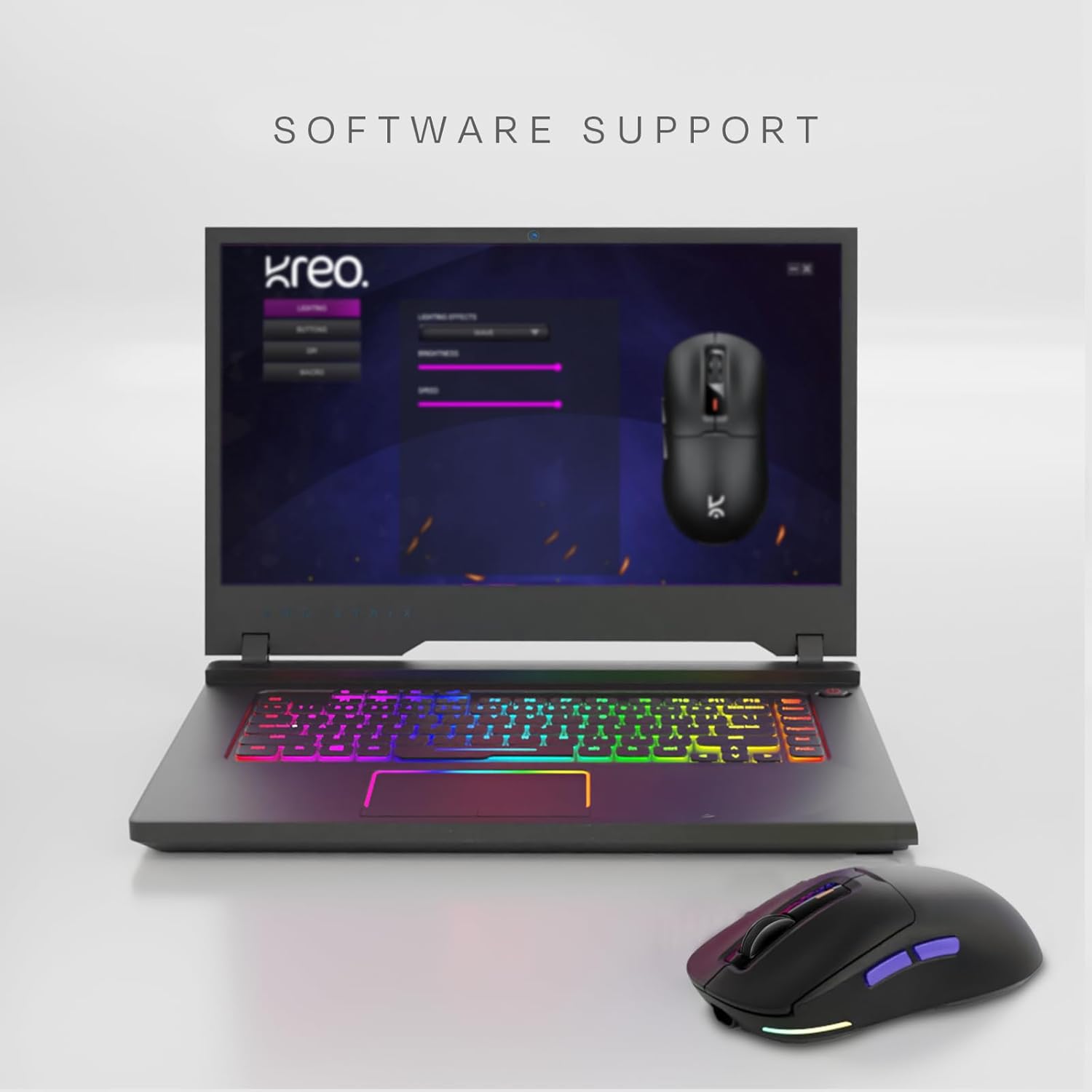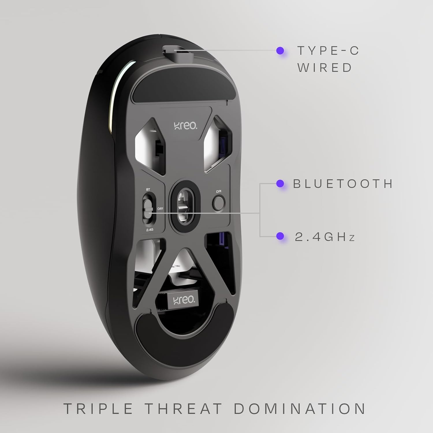OPEN BOX Kreo Pegasus 58 GMS Ultra Lightweight Wireless Gaming Mouse, Top PixArt Sensor, 6 Programmable Buttons, Bluetooth, 2.4GHz Connectivity Gaming Mouse, DPI Upto 26000