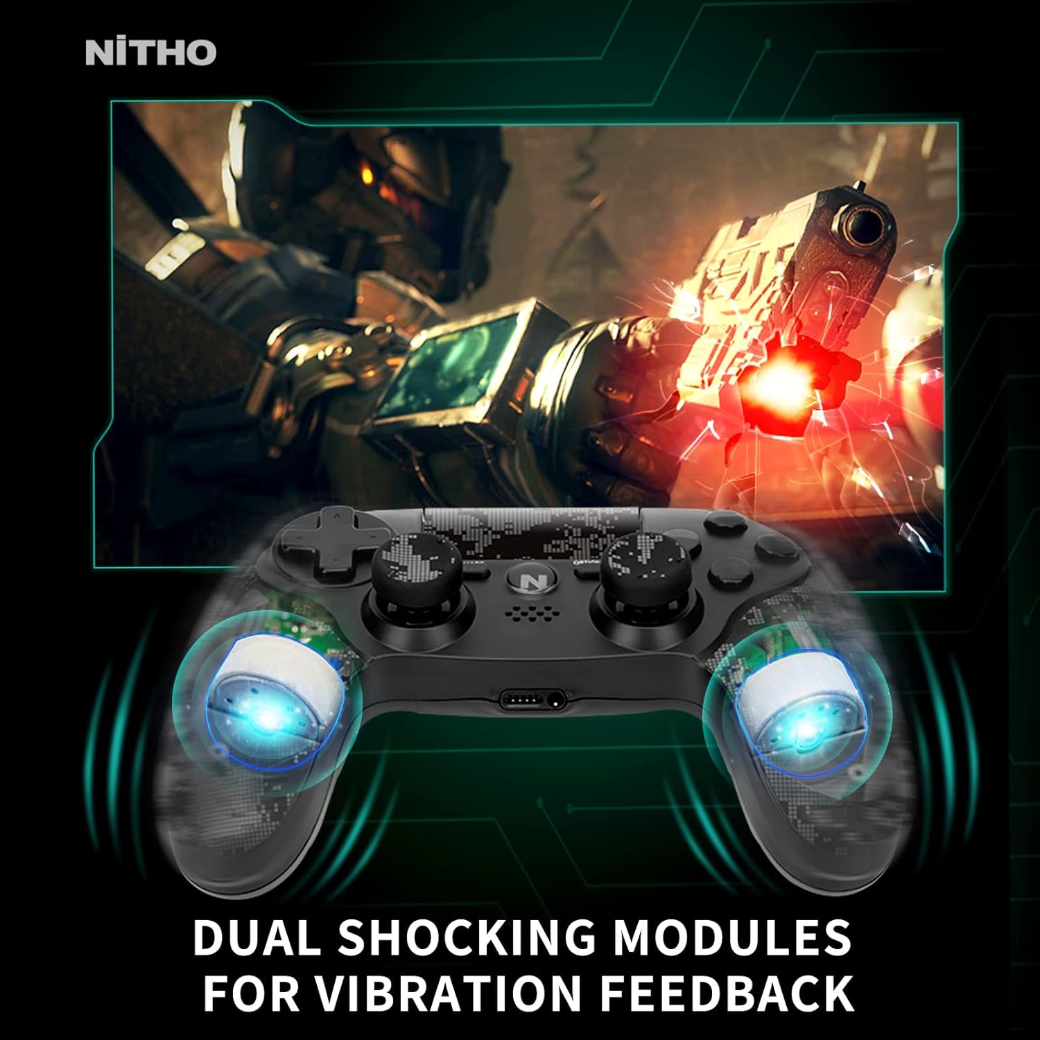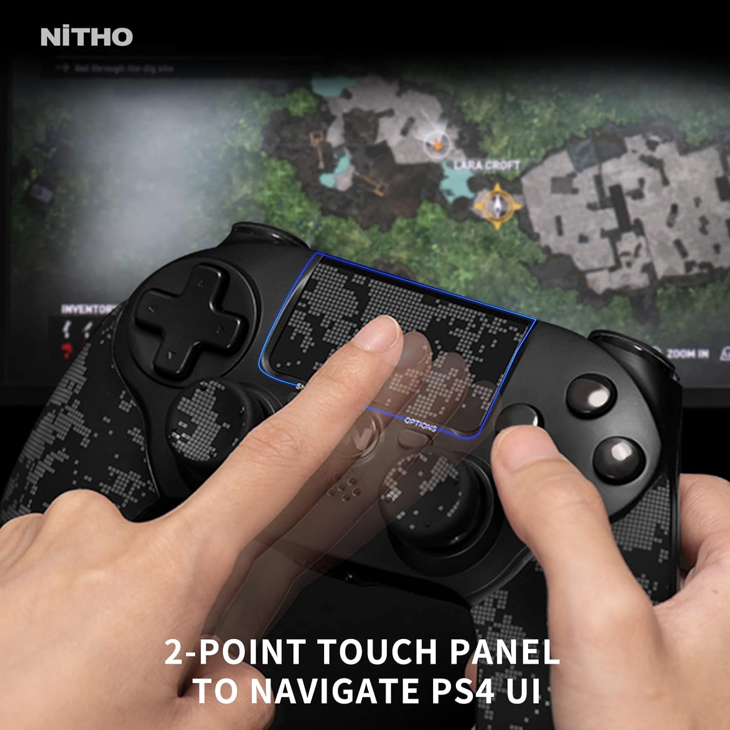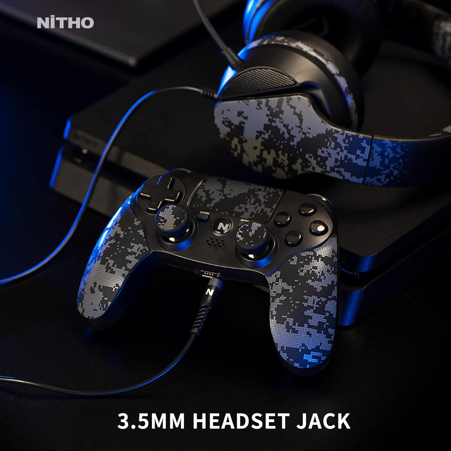 OPEN BOX Nitho ADONIS Wireless Controller for PS4, PC, iOS & Android, PS5 (with PS4 Games Only), Gamepad Joystick with Dual Vibration | 6-Axis Motion Sensor | Touchpad | Built-in Speaker | 3.5 mm Jack - Camo